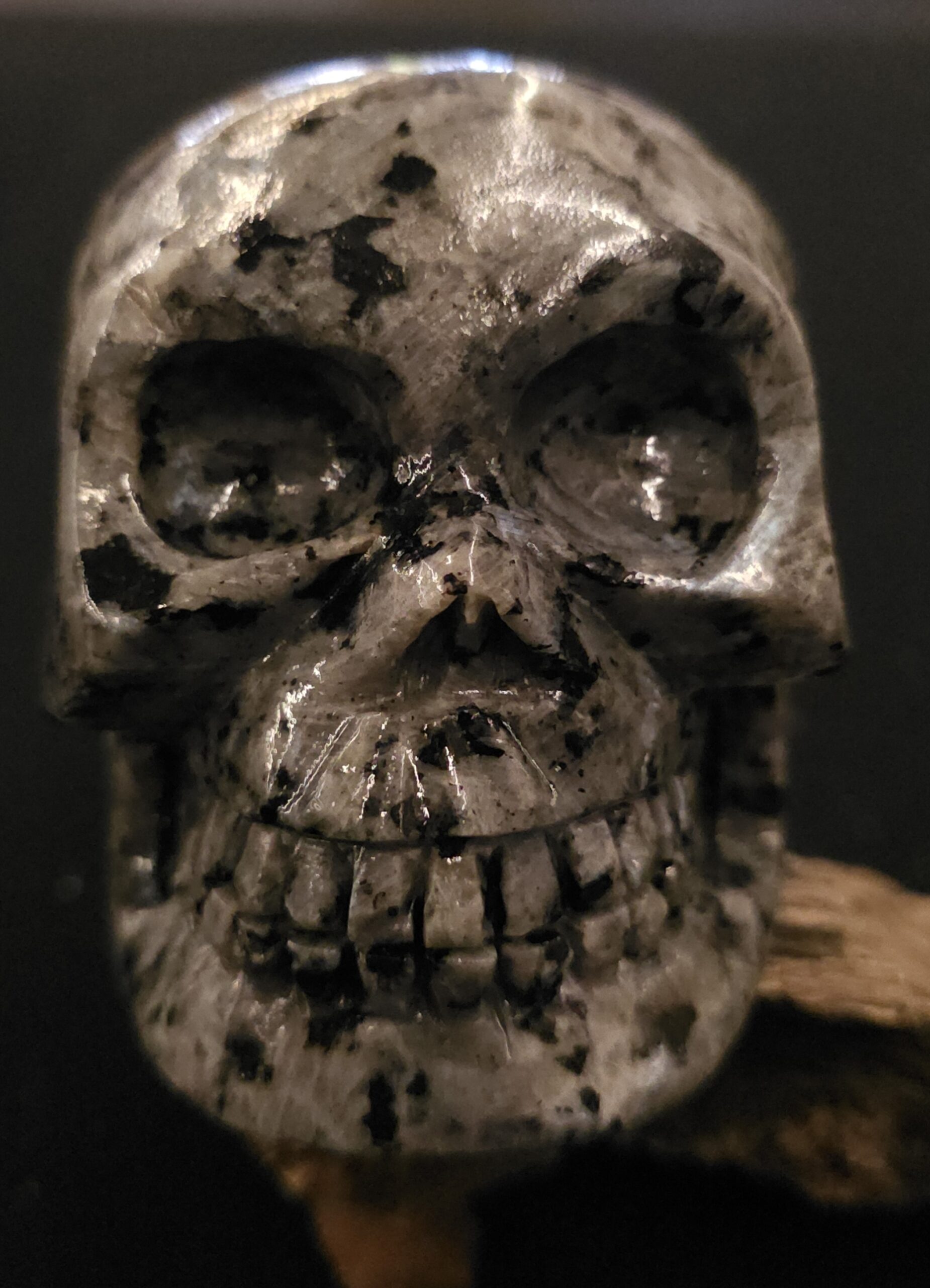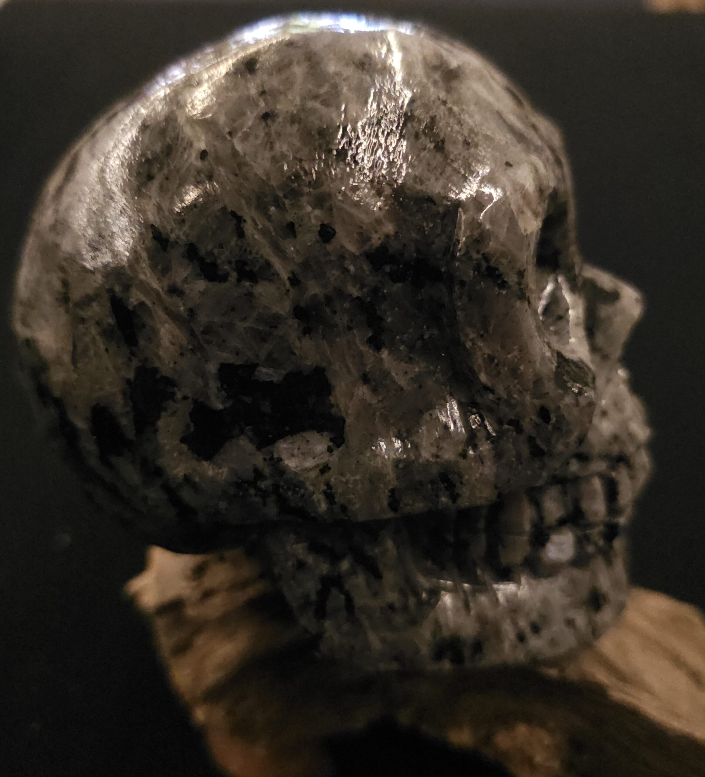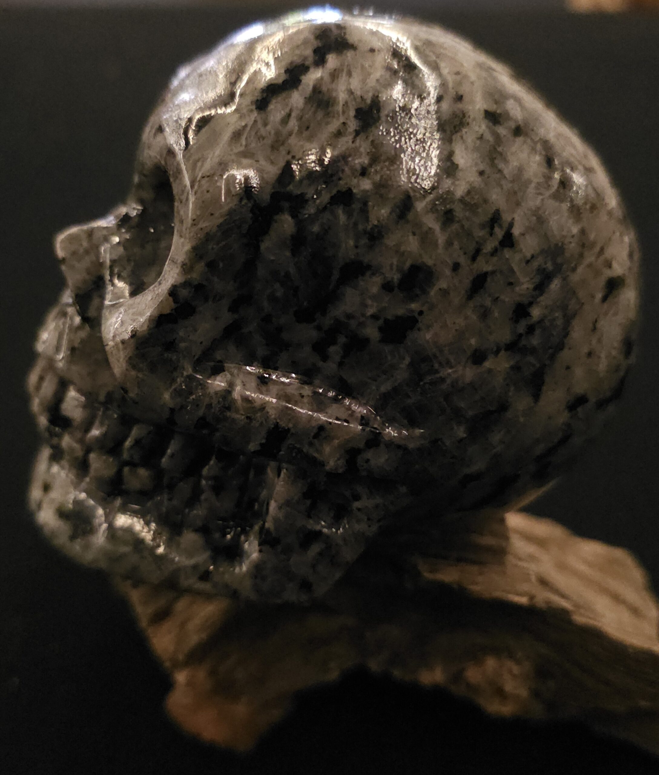 Immerse yourself in the beauty and mystique of our stunning Larvikite Skull, sourced directly from Pakistan. Known for its iridescent shimmer and deep, dark tones, larvikite is a rare and captivating gemstone often referred to as ‘Black Moonstone.’ This handcrafted skull showcases the unique detailing that makes larvikite so special, bringing both aesthetics and a touch of earth’s energy into your space.